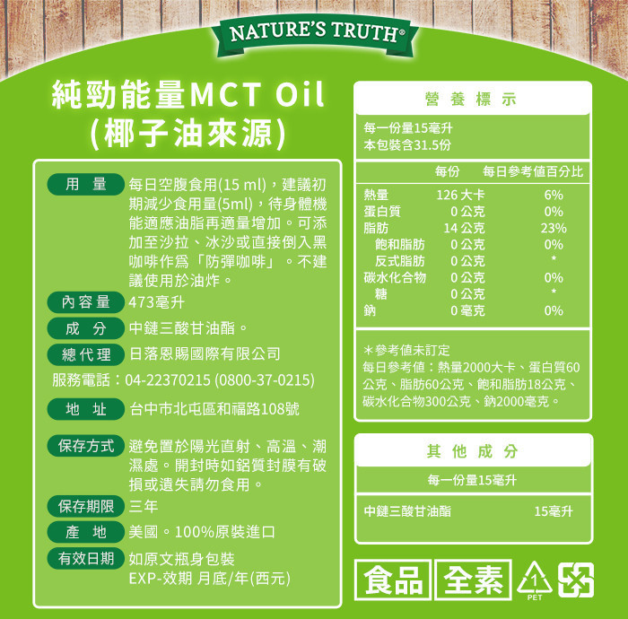 綠萃淨 純勁能量MCT Oil(椰子油來源)(473ml/瓶)