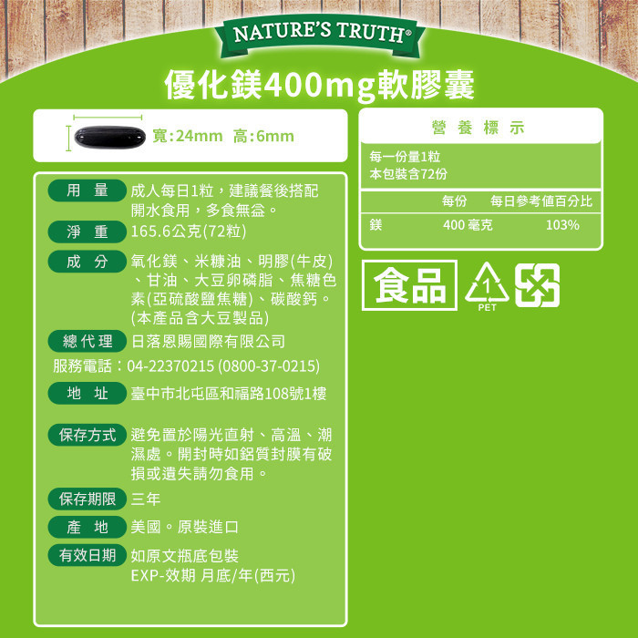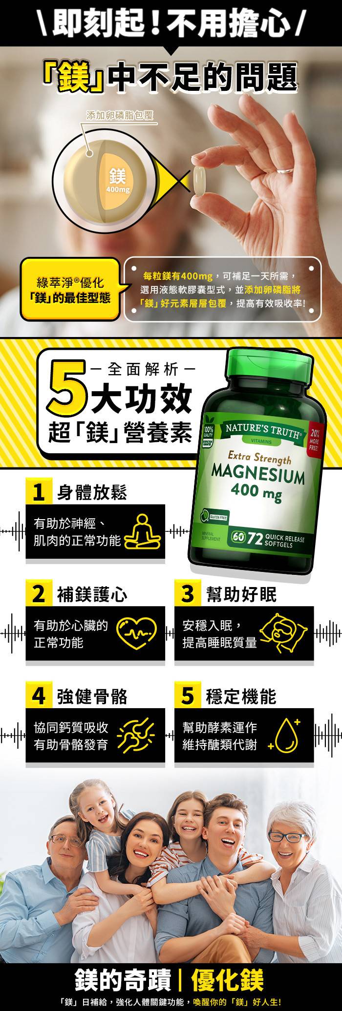 商品詳情 ★人體不可或缺的礦物質 ★400毫克高效配方 ★強化人體關鍵的功能 ★開啟「鎂」好人生 【即期品】優化鎂400mg軟膠囊(72粒/瓶)_效期至2026/4/30 TWD $790 TWD$ 790