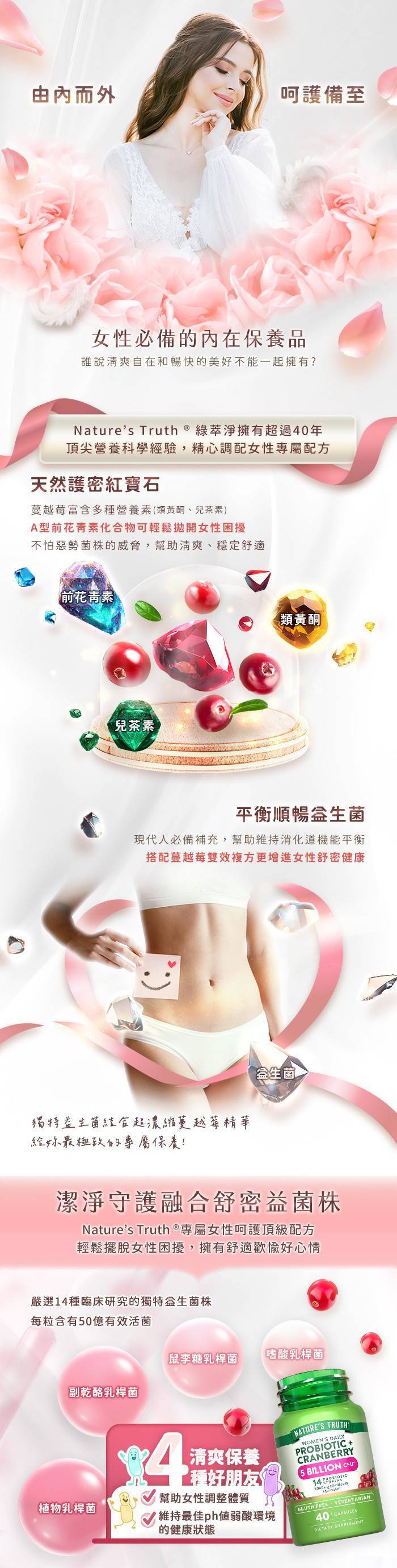 商品詳情 ★舒密雙效配方首選推薦 ★50倍濃縮北美蔓越莓 ★臨床試驗14種益生菌株 ★高達50億的活菌保護力 綠萃淨 女性蔓越莓益生菌舒密膠囊x5瓶組(共200粒) TWD $2,490 TWD$ 2,490