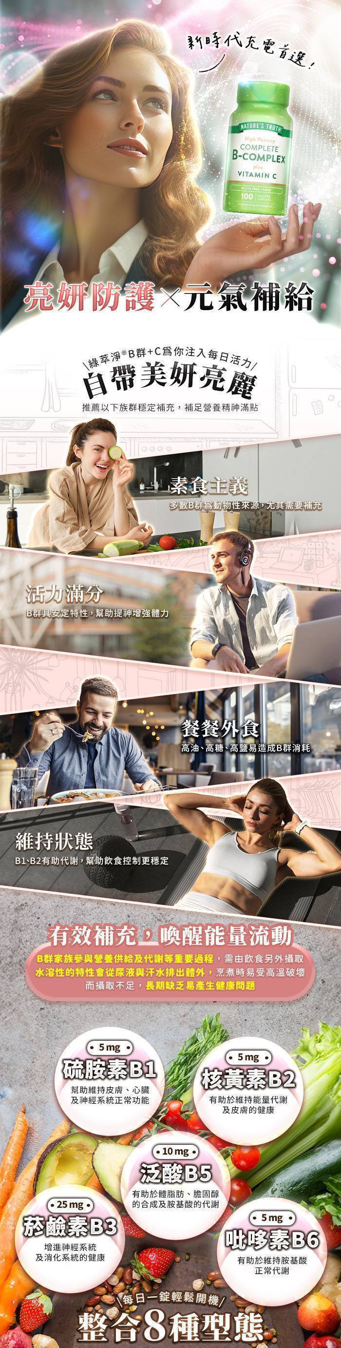 商品詳情 ★提供一日所需完整B群營養 ★素食配方,茹素者充電首選 ★B12有效劑量增量至250微克 ★搭配維生素C,妝點好氣色 綠萃淨 綜合B群+C plus 鈣活力錠x5瓶組(共500錠) TWD $2,390 TWD$ 2,390