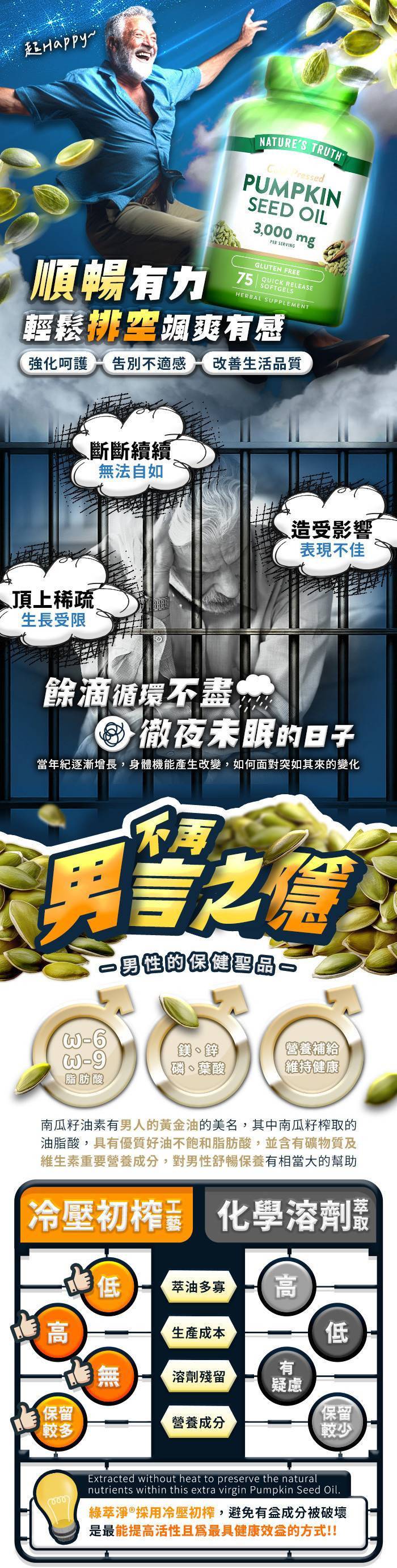 綠萃淨 冷壓初榨南瓜籽油軟膠囊(75粒/瓶)
