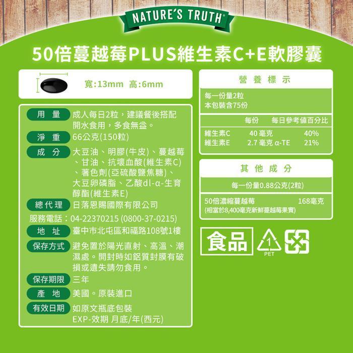 綠萃淨 50倍蔓越莓plusC+E軟膠囊(150粒/瓶)